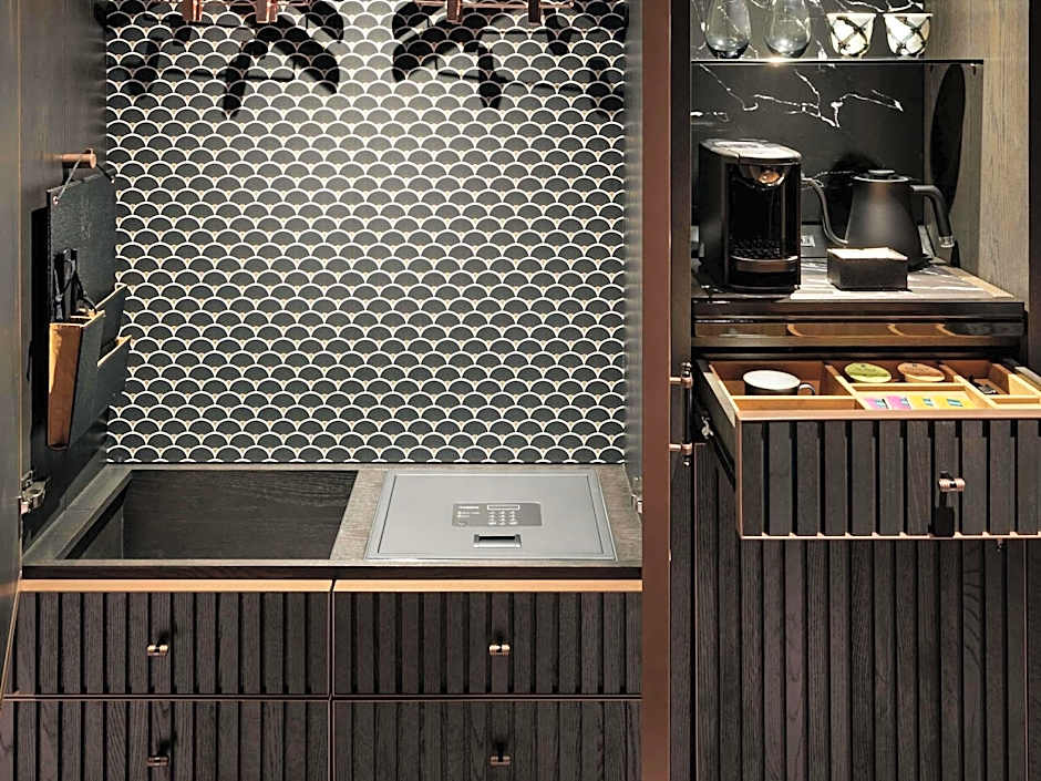 More spacious room with a large sofa and flat-screen TV. ・2th-3th floors (cannot be selected) ・This room has one king-sized bed. *Bed size: W180cm x D203cm. ・Free Wi-Fi available. ・Safety box installed. ・Coffee and tea set. ・Equipped with a bathroom with a washing area.